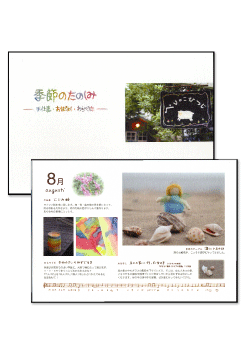 「季節のテーブル(羊毛の人形が素晴らしい)」を囲むように<手仕事><おはなし><わらべうた>がちりばめられている。1月〜12月まで卓上において、壁に貼って楽しめる14枚のカレンダー。