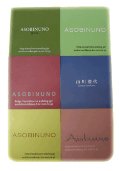 正方形(55mm)の名刺は、とてもかわいらしい形状です。色合いは、山川さんからご助言頂いて、渋い色、淡い色、のよい色が出せました。商品タグにもお使い頂けます。